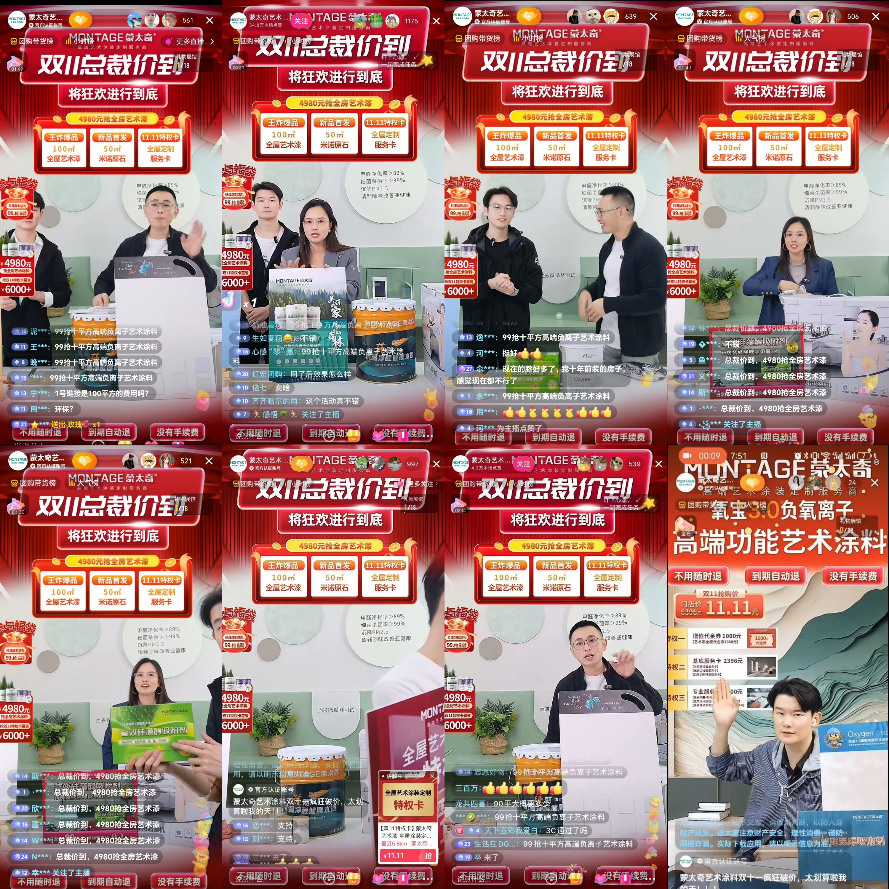 此次大場直播,蒙太奇品牌聯(lián)合創(chuàng)始人、藝術(shù)涂料最美老板娘呂芳方女士驚艷亮相直播間,帶來了蒙太新品臻石·米諾原石,并且在直播現(xiàn)場大“放價”,包括11.11元特權(quán)卡、新品爆品雙11專享價、人氣福袋等多重福利,迅速點燃了觀眾的下單熱情,屢屢將直播間氛圍推向高潮。