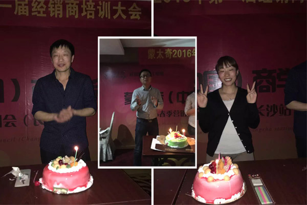 【蘇總】:因為我做的是安徽蚌埠的市代,我的規劃是五河店已開,下一步就是把固鎮和懷遠縣全部開起來,目前只有我蒙太奇敢在縣城開店。本來這次長沙的培訓是去不了的,但是我覺得還是要給自己“充電”,也要給店內人員灌輸點新的品牌知識,就把兩個店的店長帶去學習了一下。這次長沙培訓會和去年的年會都讓我受益匪淺。同時這次也要謝謝方總,正好我是4月12生日,還在長沙過了一次不一樣的生日。